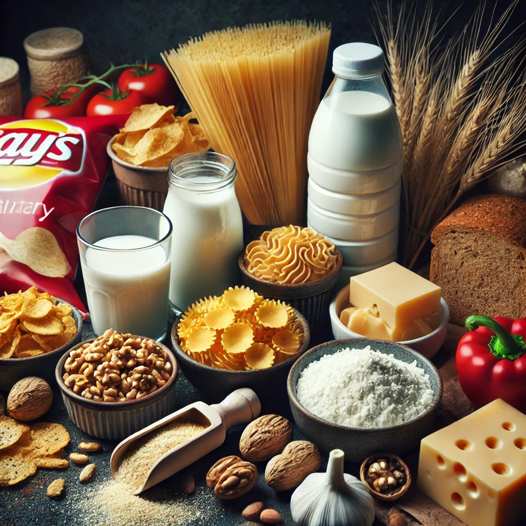 가공식품, 유제품, 밀가루, 견과류 등은 일부 사람들에게 알레르기 반응을 유발할 수 있습니다.