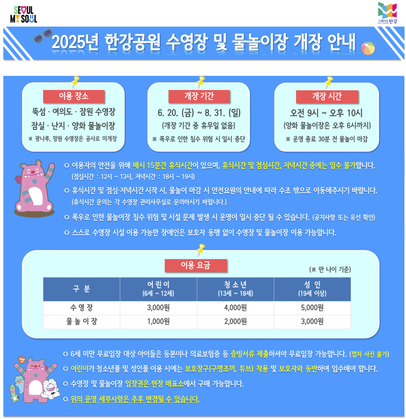각 이벤트는 수영장마다 일정이 다르니 방문 전 공식 홈페이지나 SNS 확인은 필수입니다.
