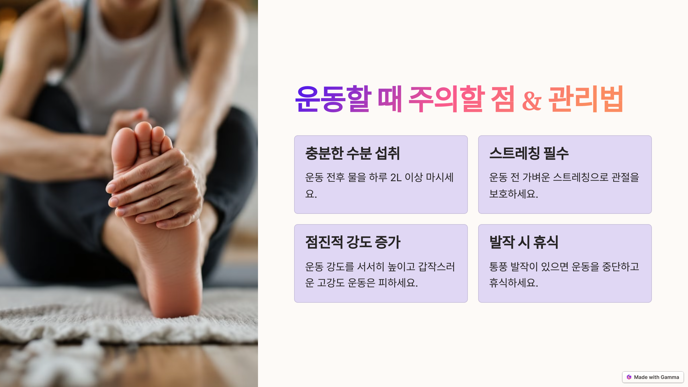 💡 통풍 환자도 올바른 운동을 하면 증상 완화와 예방이 가능합니다!