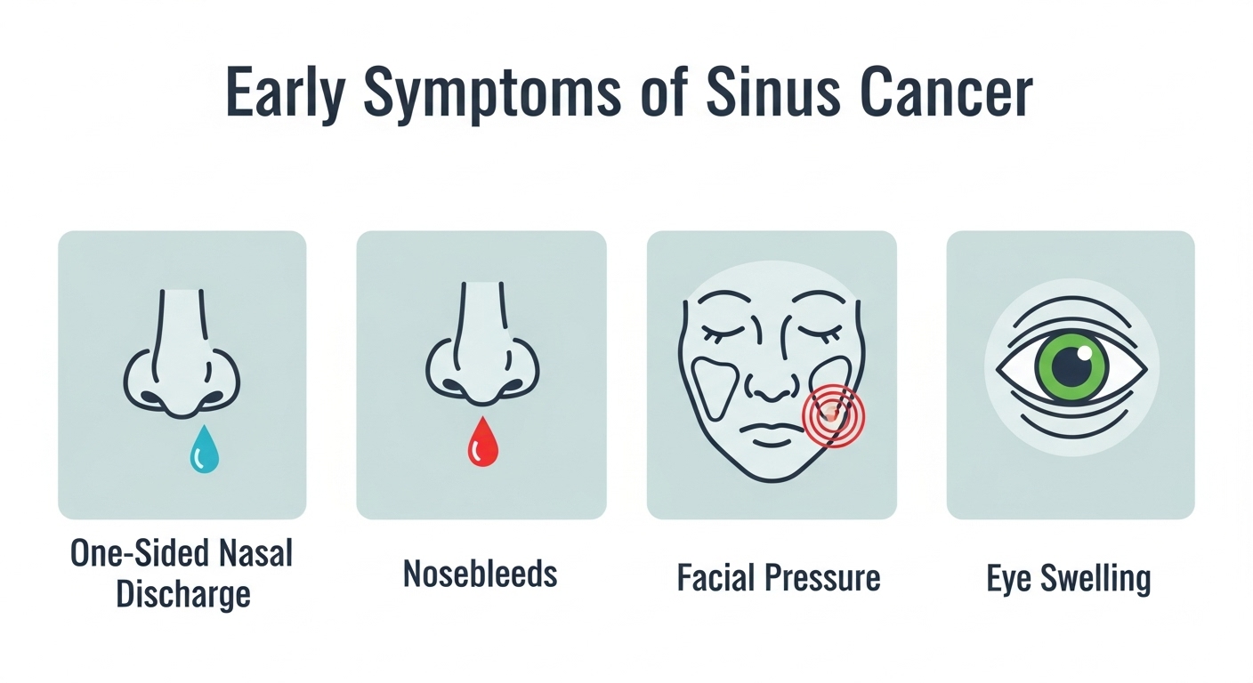 부비동암의 초기 증상은 정말 교묘합니다. 대부분의 환자들이 “감기가 안 낫는다”거나 “축농증이 심해졌다”고 느끼죠.