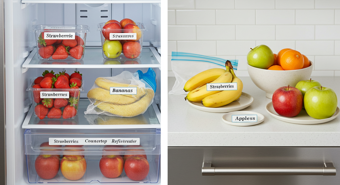 ✅ 주의: 에틸렌 가스가 나오는 과일(사과, 키위, 바나나)은 다른 식재료와 떨어뜨려 보관해야 변질을 막을 수 있어요!