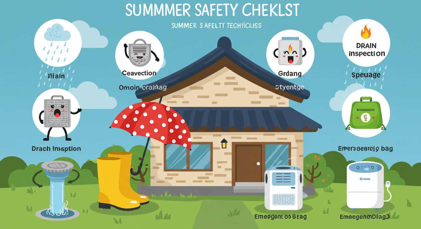 - ✅ 배수로 점검 – 장마 시작 전에 집 주변 배수구와 지붕 배수시설 점검하세요.